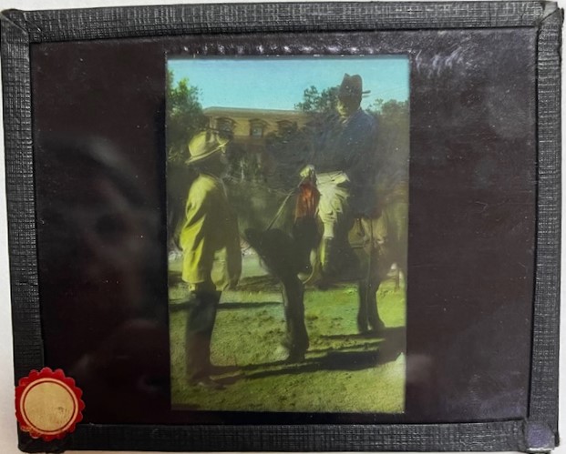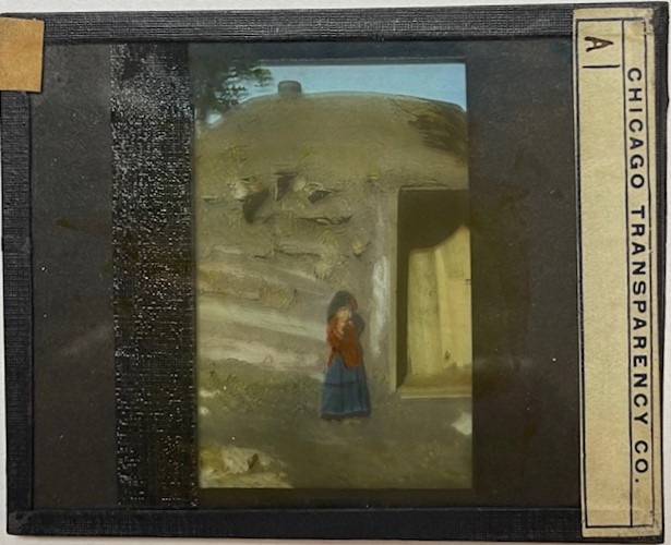 The Chicago Transparency Company were among the vendors who produced and sold ready-made glass plate slides made from daguerreotypes, cabinet photos and other original photographs on a variety of topics. The slides were made in black-and-white, and each set was hand-colored, so none of them are precisely the same.