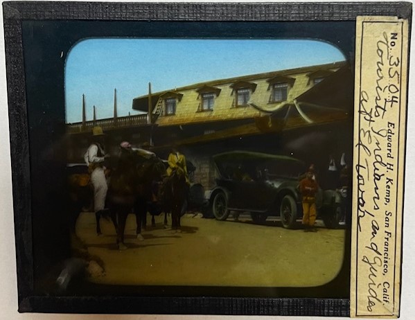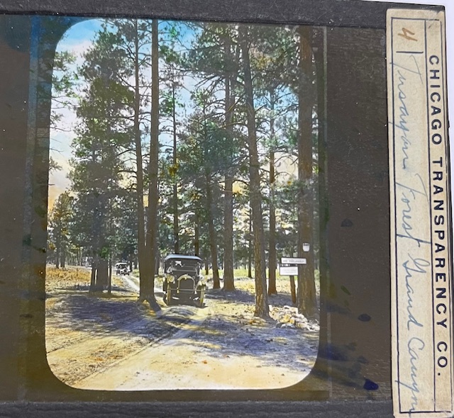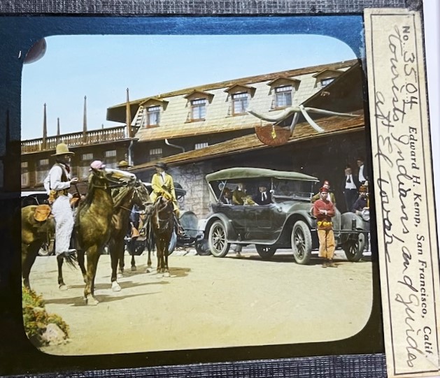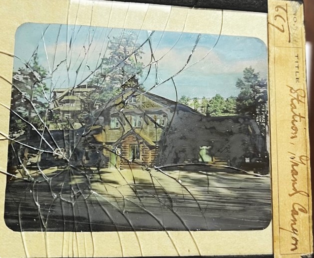 Arthur Anderson, was employed by the Harvey organization in the early 1900’s. He was stationed in New Mexico for three years as a photographer for Harvey. He took photographs on glass slides – a local made color swaths on them and they were sent to Chicago where they were turned into post cards to be sold in Harvey stores. The glass slides are of historical interest (some include photos of Teddy Roosevelt, buildings, Indian gatherings and panoramas of the area). Courtesy of Valerie Petersen-Beard.